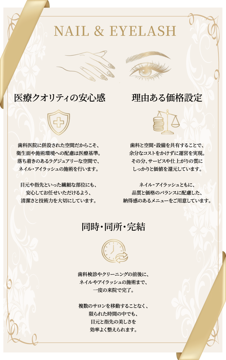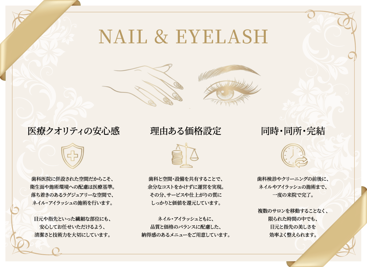 通院のついでに目元や指先のケアができるのも特長のひとつ。
